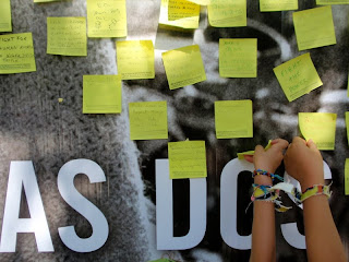 Curioso foi descobrir agora o primeiro filme asiático em língua chinesa da Warner Bros. : Turn left, Turn right. Geometrias em direcções opostas, dois planos num mesmo fundo, na mesma cena, um homem e uma mulher ligados pela cor e por uma cortante simetria... Demasiada coincidência só a partir do cartaz? Não, de todo. Foi mesmo baseado no livro de Liao, que até surge como personagem nalgumas cenas do filme. Obrigada a quem no-lo deixou todo aqui.